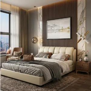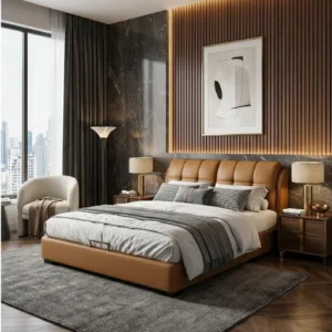 Upgrade your bedroom with this luxury padded bed cot designed for both comfort and modern aesthetics.