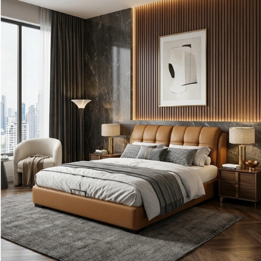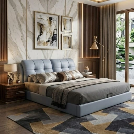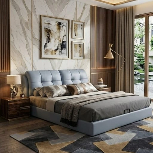 Premium padded bed with soft cushioned headboard, sturdy build and elegant modern look for stylish bedrooms.