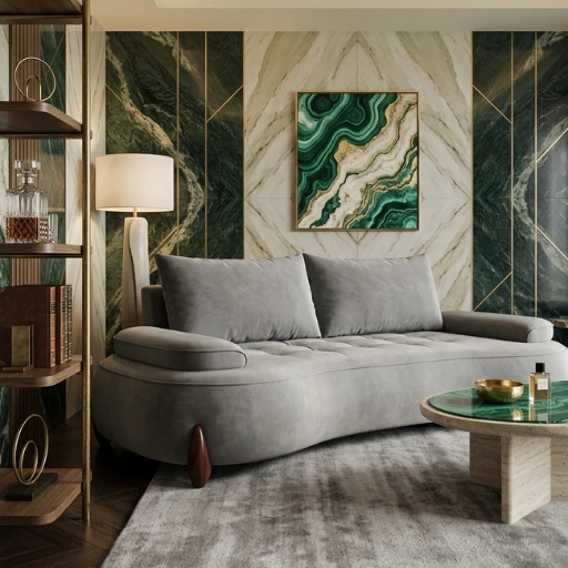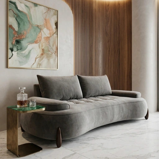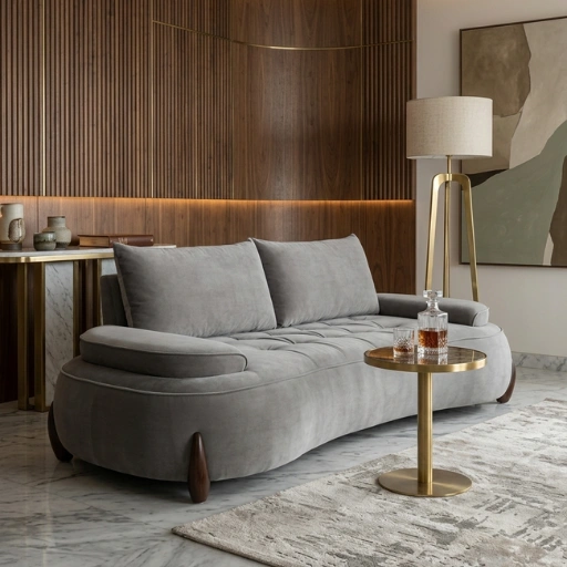 Add a stylish touch to your living room with this modern curved fabric sofa.