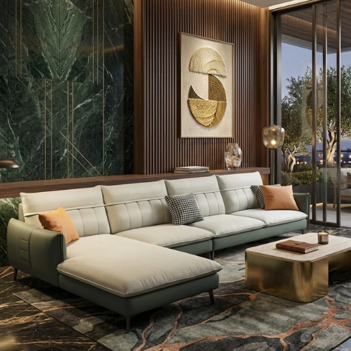 Stylish L shape sofa with soft cushioning and spacious seating for modern homes.