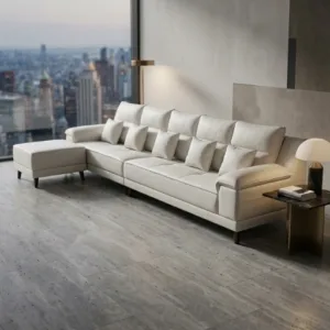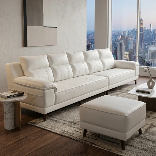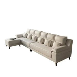 Elegant sofa set with soft cushioning, clean design and spacious seating for modern living rooms.